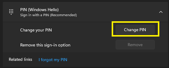 Change your PIN (Windows Hello)