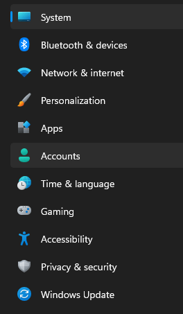 Click on "ACCOUNTS" in the left pane.