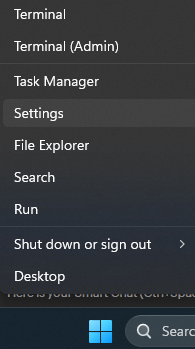 Right-Click on the START button, then click "SETTINGS".