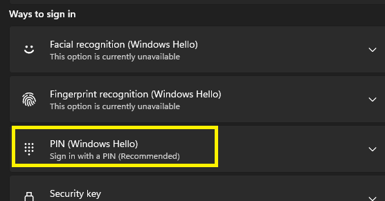 Click on "PIN (Windows Hello).