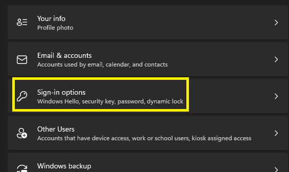 Now click on "Sign-in Options" in the right pane.