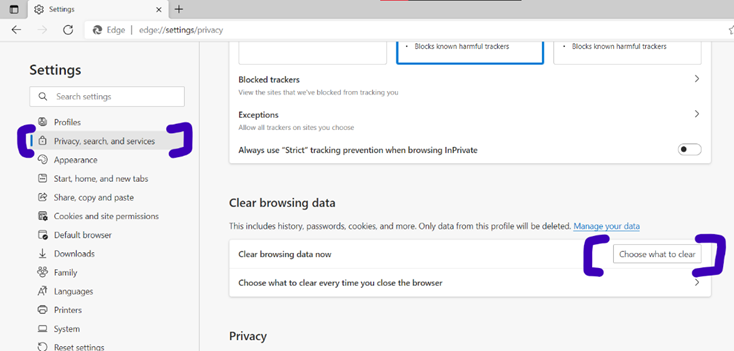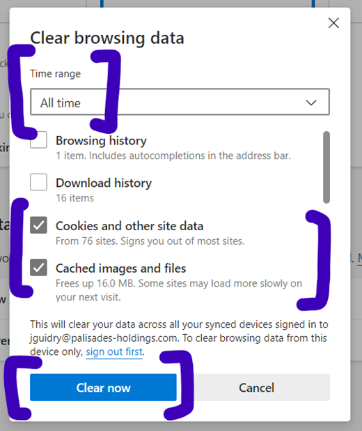 other site data” and “Cached images and files”, then click on “Clear now”.